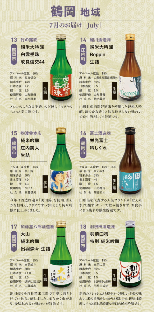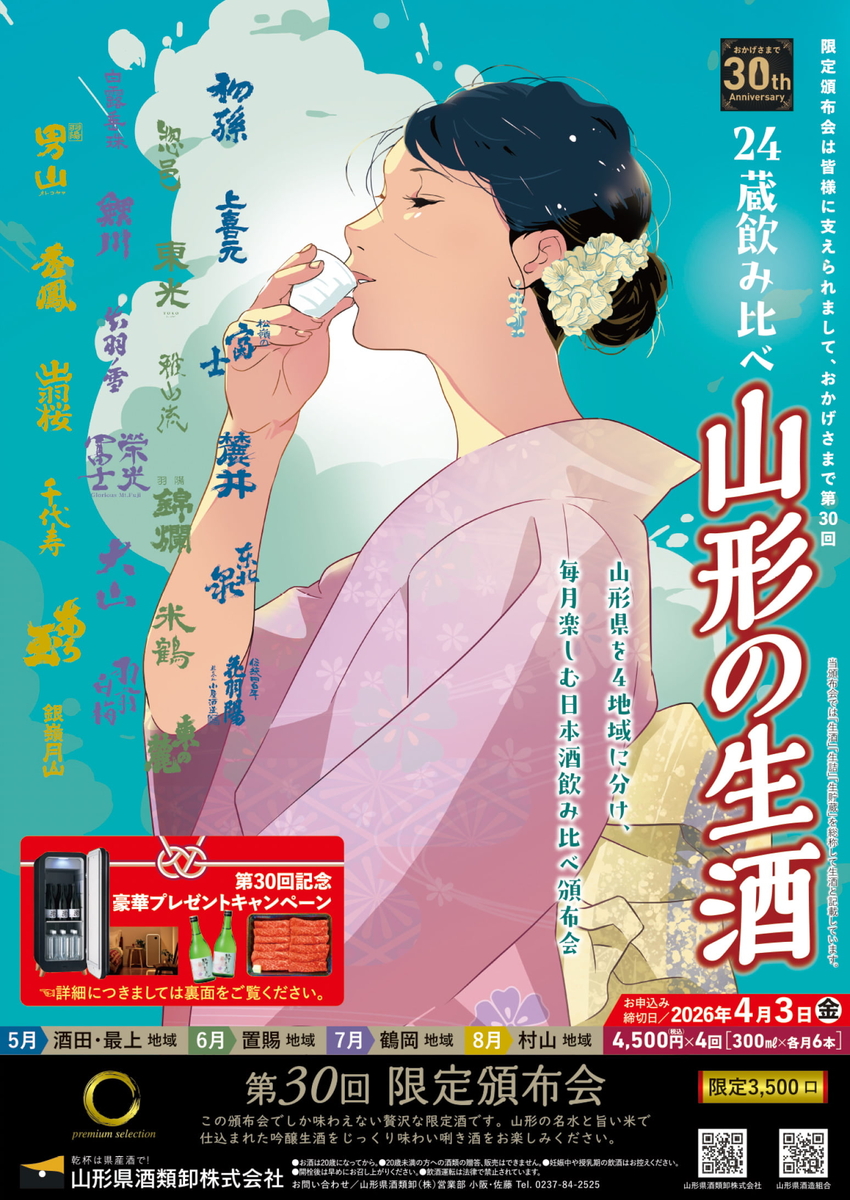 山形の有力な酒蔵のお酒を網羅した「山形の生酒頒布会」のご案内です。 この頒布会でしか味わえない贅沢な限定酒です。山形の名水と旨い米で仕込まれた吟醸生酒をじっくり味わい唎き酒をお楽しみください。