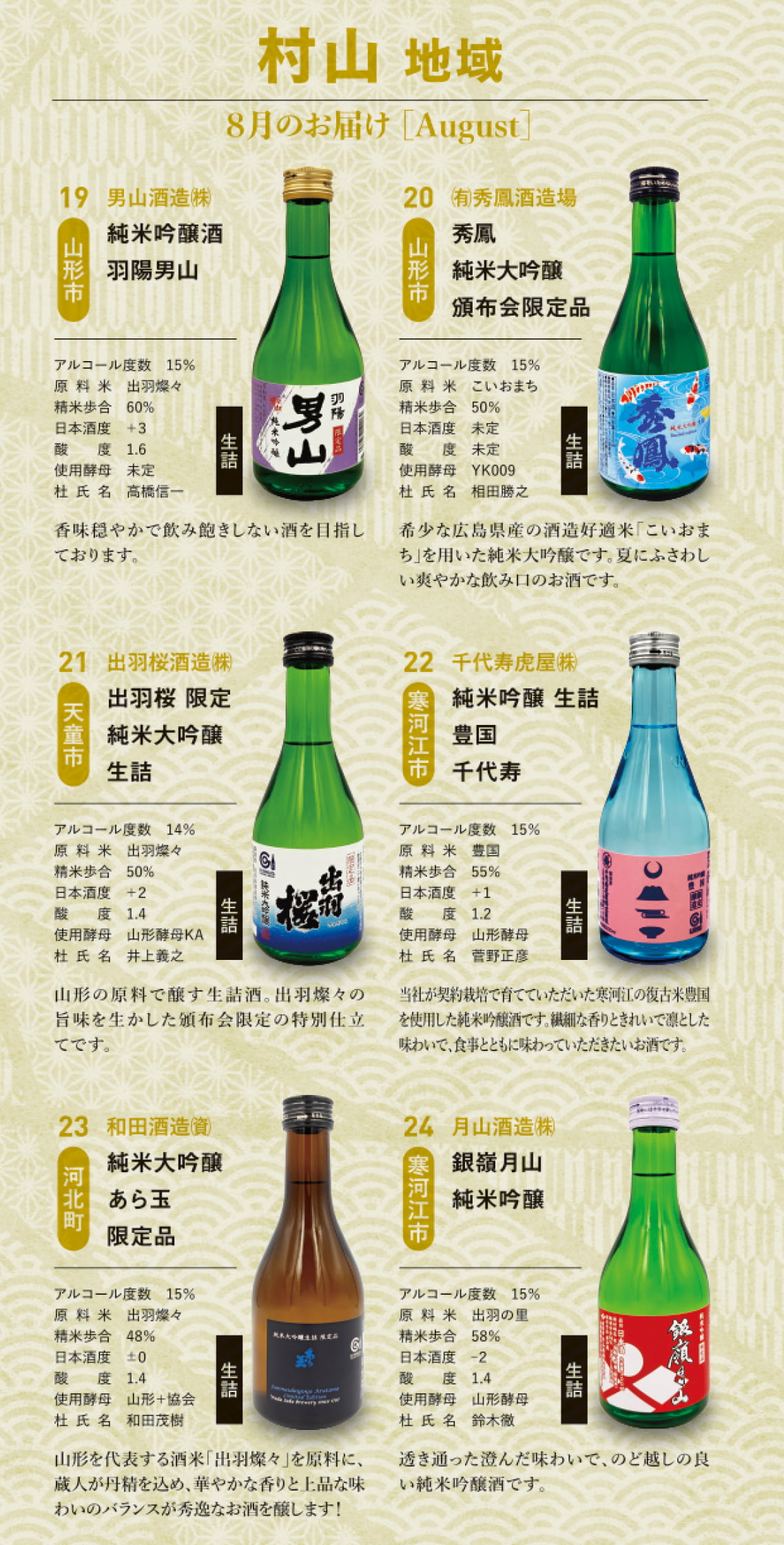 <4ヶ月連続>山形の生酒頒布会【5月~8月お届け】