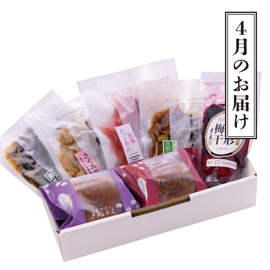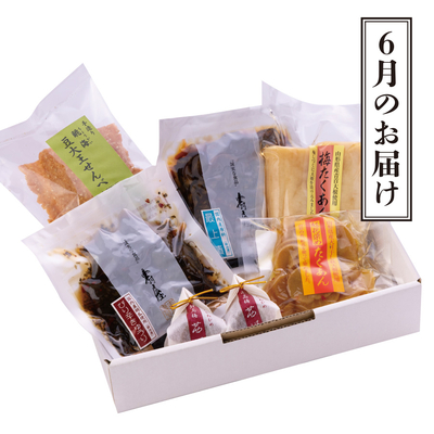 大好評のお取り寄せセットを4ヶ月連続でお届けいたします。毎月20日(はつか)ごろのお届けとなります。季節ごとに、ほどよい漬け込み具合、食べごろの漬物のお届けとなりますので、ご自宅で旬を感じていただけます。